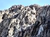 We started out climbing along the west side of the ridge, staying high on the talus and bypassing the pinnacles on the lower ridge. We continued to climb along the base of the obstacles on the ridge, at times clambering over some steep terrain covered with loose talus. Soon, we came to the first of several gullies we were to encounter.