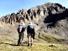 continued gully-climbing until we reached a severe and radical series of ragged, vertical rock faces. This jumbled mountain of stone was obviously impassable, so we backtracked a very short distance to a notch into a descending gully that headed east. Here we sat and read Roach's route description, describing a "prominent, 13,500-foot notch on the ridge crest north of the pinnacles." Checking our GPS units, we discovered we were at about 13,500 feet. This description matched our exact location, although the described route now said to ascend a south-facing gully. It turns out that we had to descend this eastern-facing gully before the southern gully became visible. The descent was short, but loose, so we took turns descending to avoid creating a "bowling alley" effect of falling, bouncing rocks.